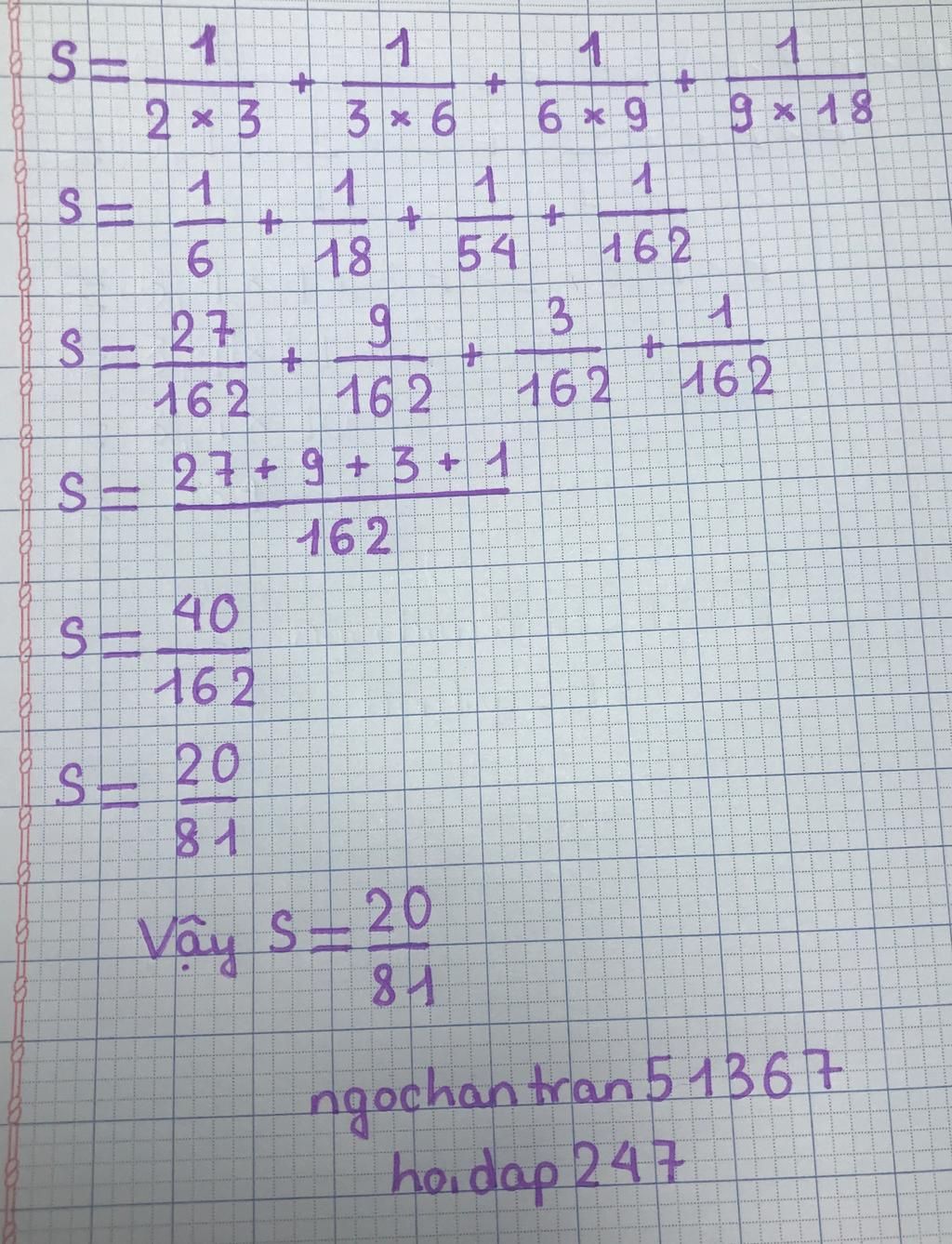 `s=1/(2xx3)+1/(3xx6)+1/(6xx9)+1/(9xx18)`