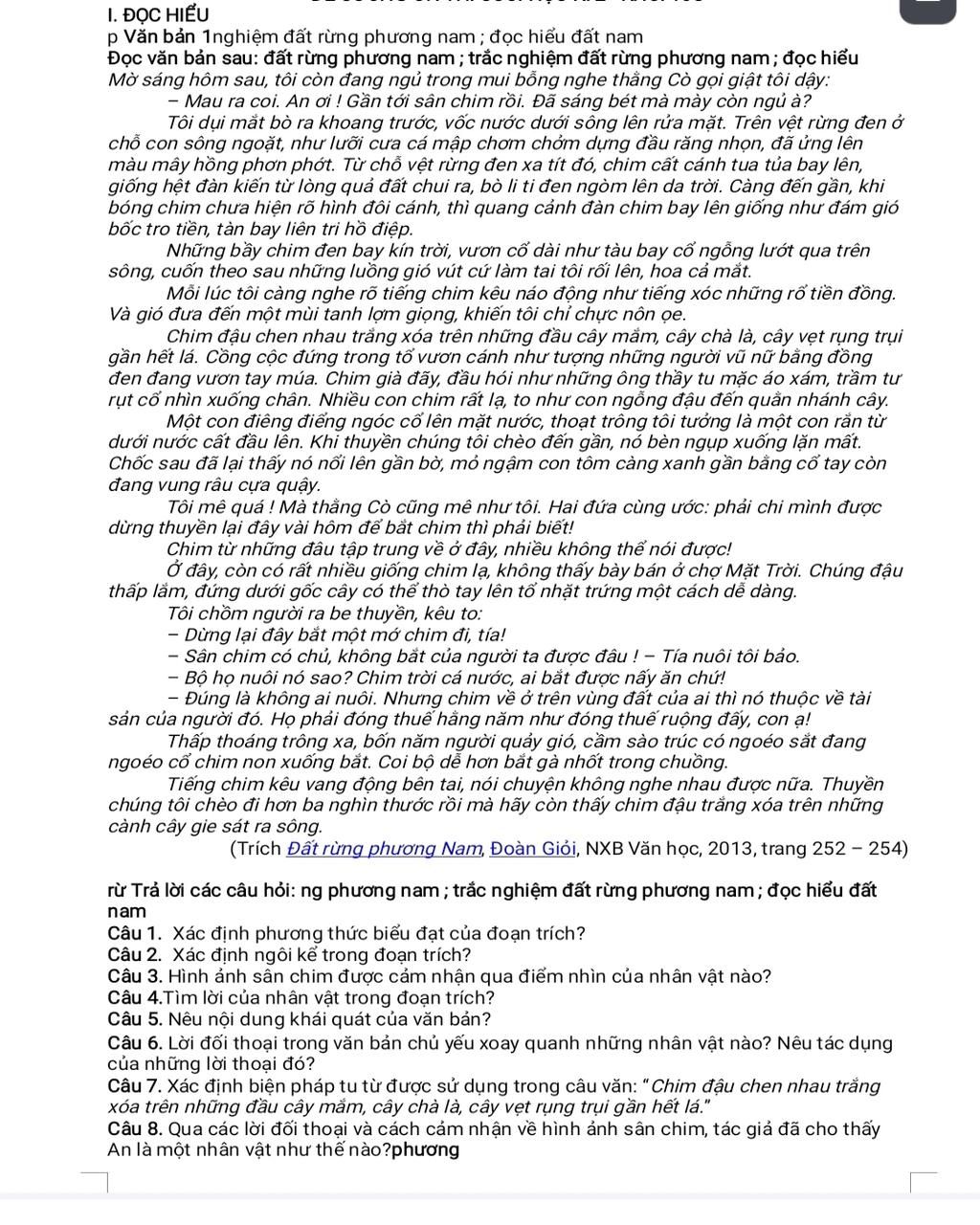 Nhân vật tôi: dừng lại đây bắt một mớ chim đi, tía
