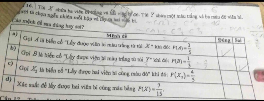 a.Tổng số bi trong túi X là: