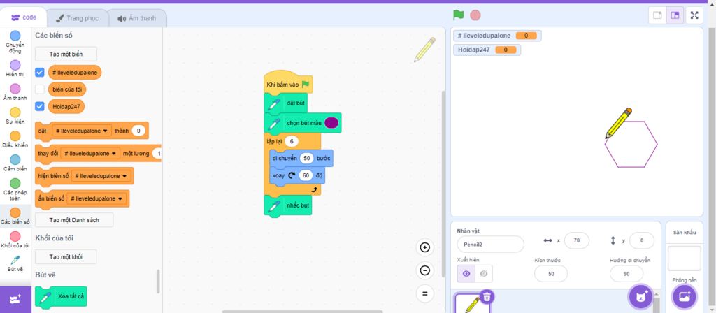 lặp lại (tạo một biến tên số cạnh)số cạnh