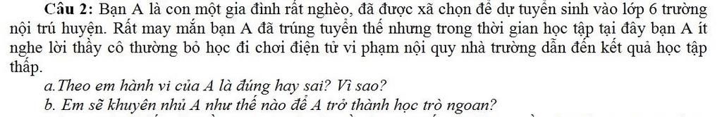 A) Theo em, hành vi của bạn A là sai