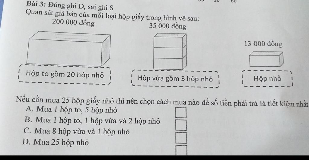 Nếu mua 1 hộp to , 1 hộp vừa và 2 hộp nhỏ thì phải trả :