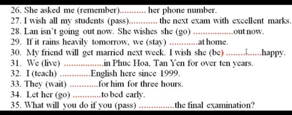 S + wish(es) + S+ was/were + Ving : ước ở hiện tại