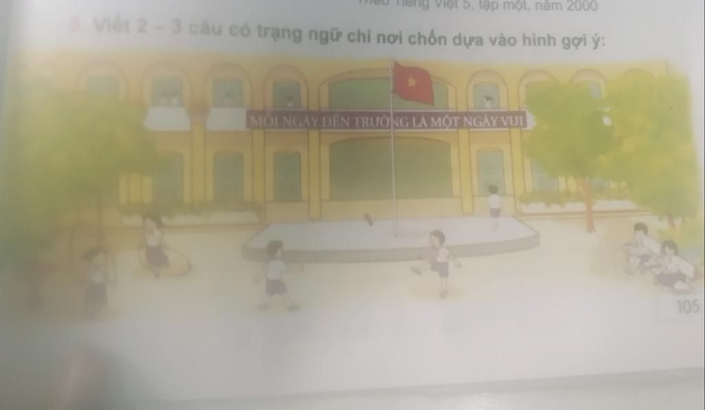 Viết 2-3 câu có trạng ngữ chỉ nơi chốn dựa vào hình gợi ý: