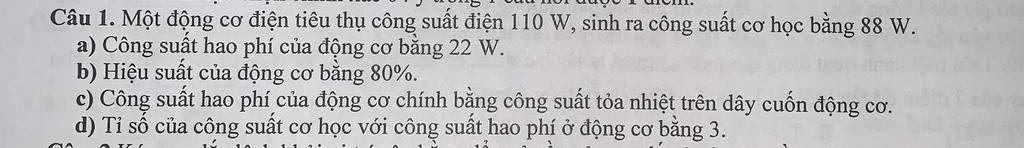 cho e hỏi câu c ạ đ/a của cô e là: Sai vì công suất hao phí do tỏa nhiệt và do lực cản không khí, trục động cơ...