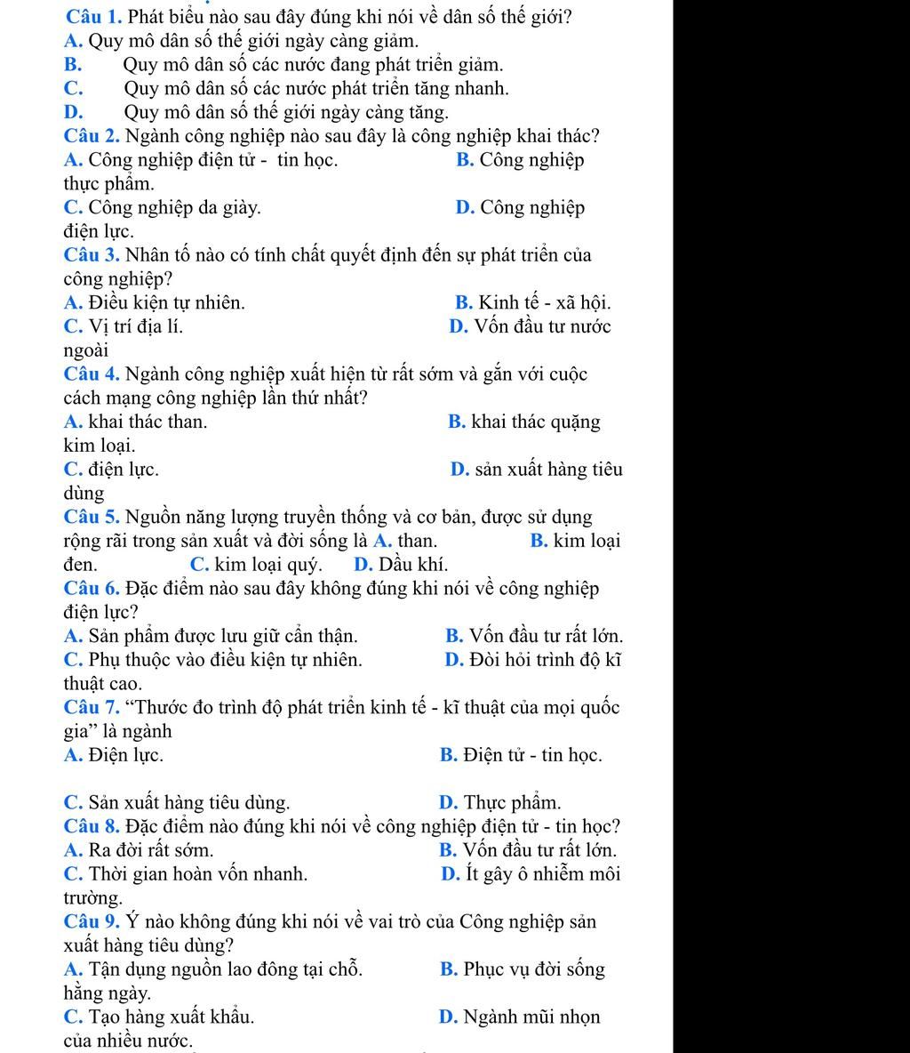C1. D. Quy mô dân số thế giới ngày càng tăng