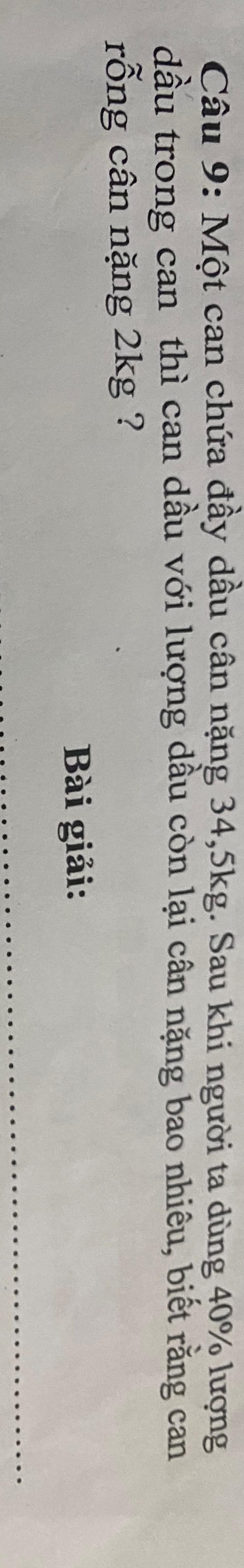 Số lượng dầu còn lại và can dầu nặng số kg là: