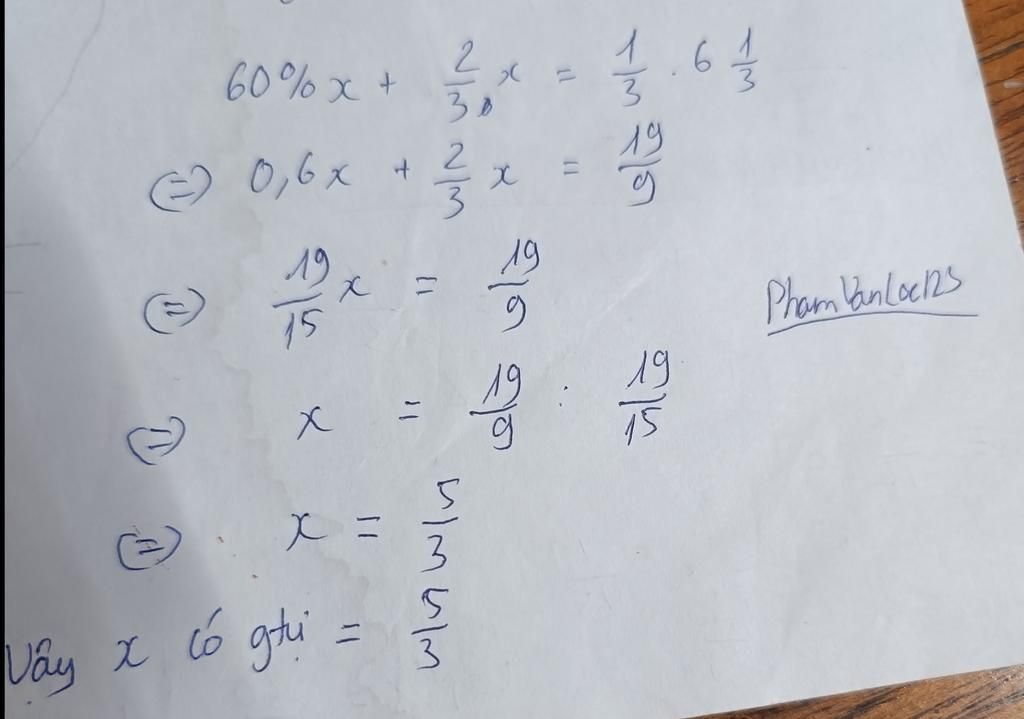 `60%x + 2/3x = 1/3 . 6(1)/3`
