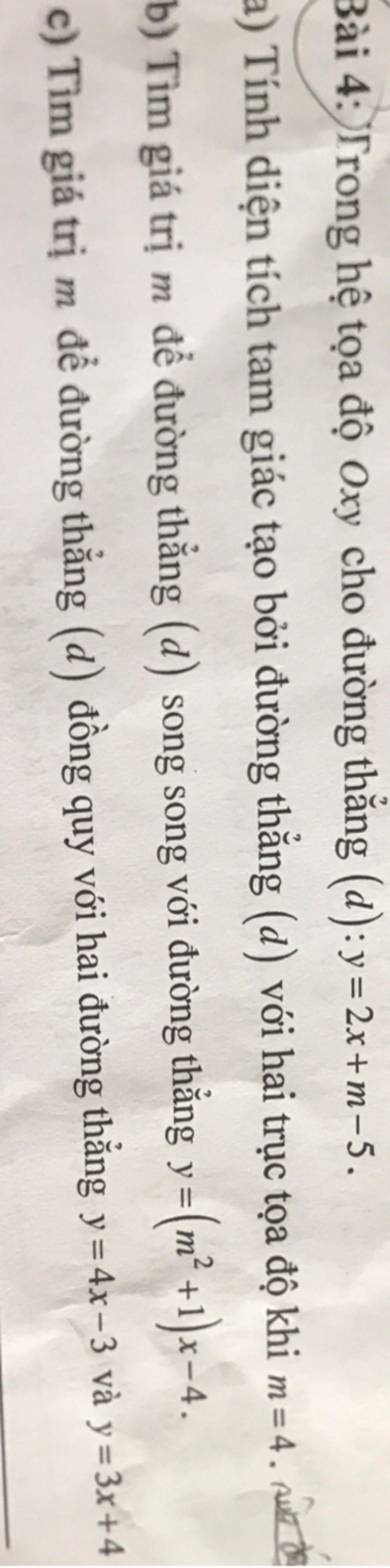 b, Để (d) song song với đồ thị hàm số y = ($m^{2}$ +1)x - 4 thì: