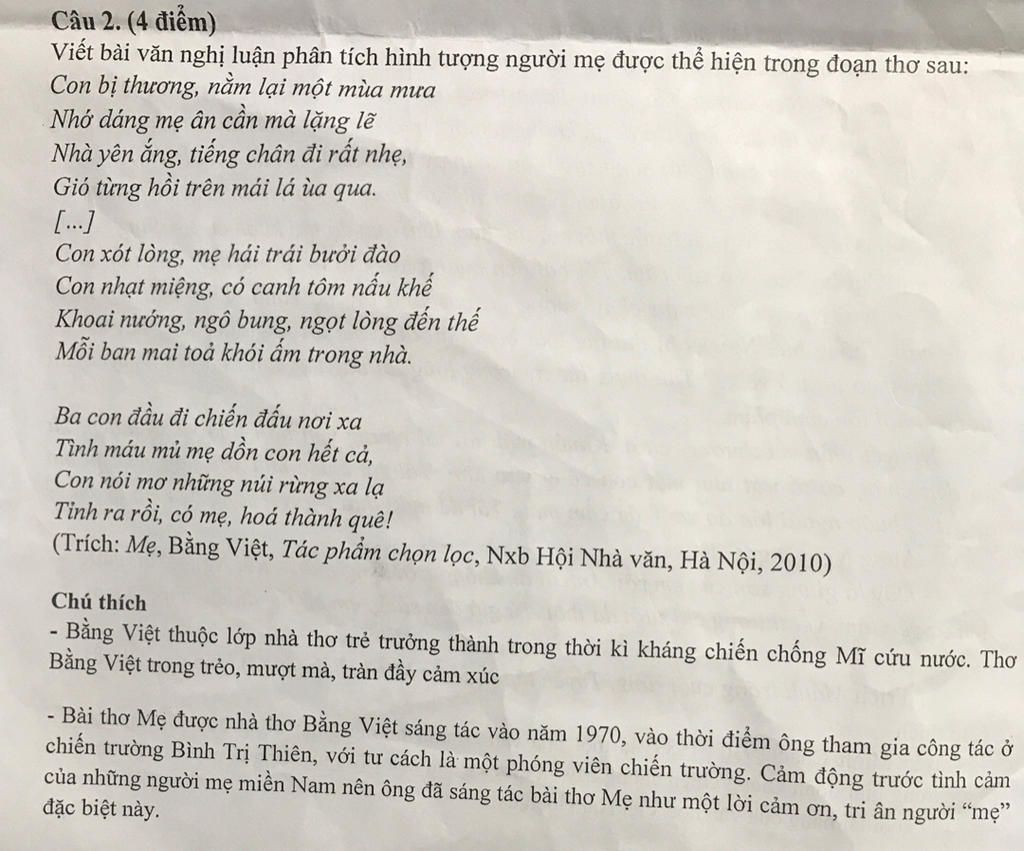 Viết bài văn nghị luận phân tích hình tượng người mẹ được thể hiện trong đoạn thơ sau: