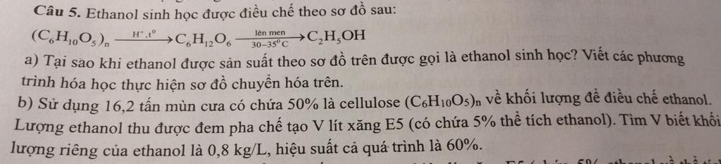 Ethanol trên được gọi là ethanol sinh học vì được điều chế từ nguyên liệu có trong tự nhiên là cellulose, men rượu nên thân thiện với môi trường.