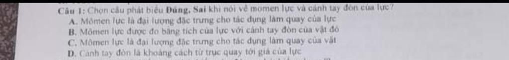 Momen lực là đại lượng đặc trưng cho tác dụng làm quay của lực.