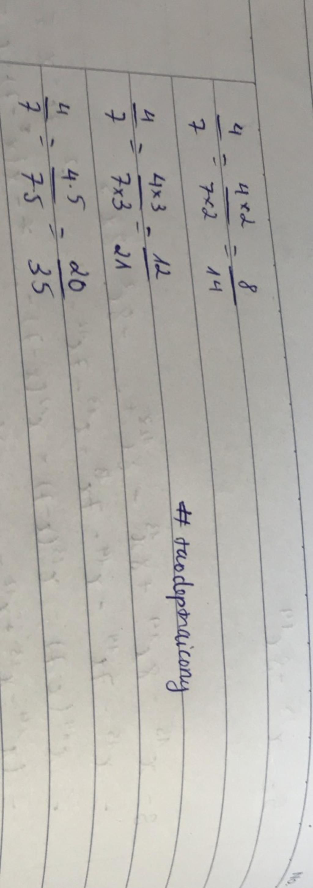 $\dfrac{4}{7}$=$\dfrac{8}{14}$=$\dfrac{12}{21}$=$\dfrac{20}{35}$
