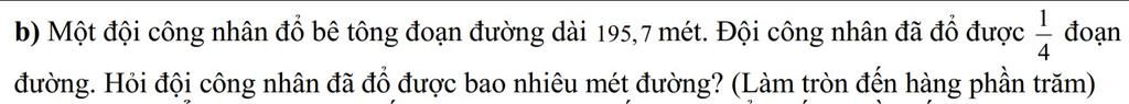 đội công nhân đã làm được 1/4 đoạn đường dài 195,7m nên