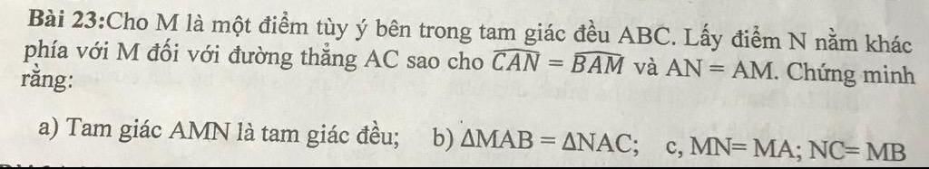 Bài 23:Cho M là một điểm tùy ý bên trong tam giác đều ABC. Lấy điểm N nằm khác