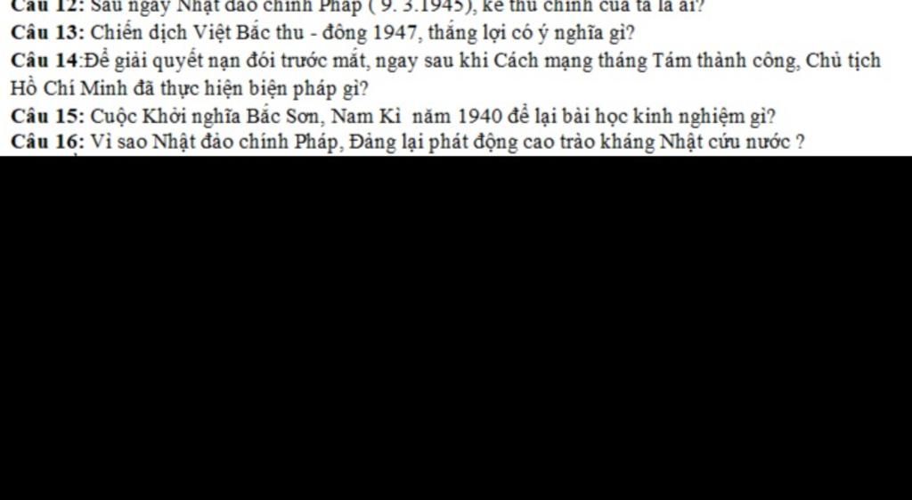 Câu 12: Sau ngày Nhật đảo chính Pháp (9/3/1945), kẻ thù chính của ta là Nhật.