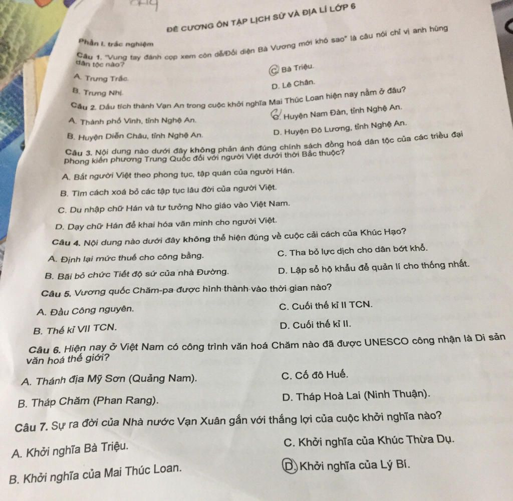 ĐỀ CƯƠNG ÔN TẬP LỊCH SỬ VÀ ĐỊA LÍ LỚP 6