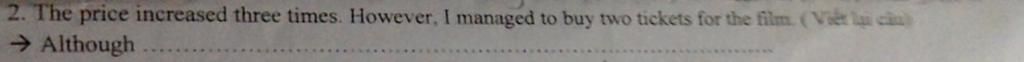 `-` Tạm dịch: Mặc dù giá tăng gấp ba lần nhưng tôi vẫn mua được hai vé xem phim