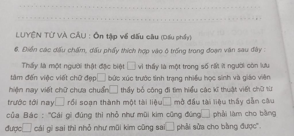 Ta điền các dấu chấm, dấu phẩy thích hợp vào ô trống như sau :