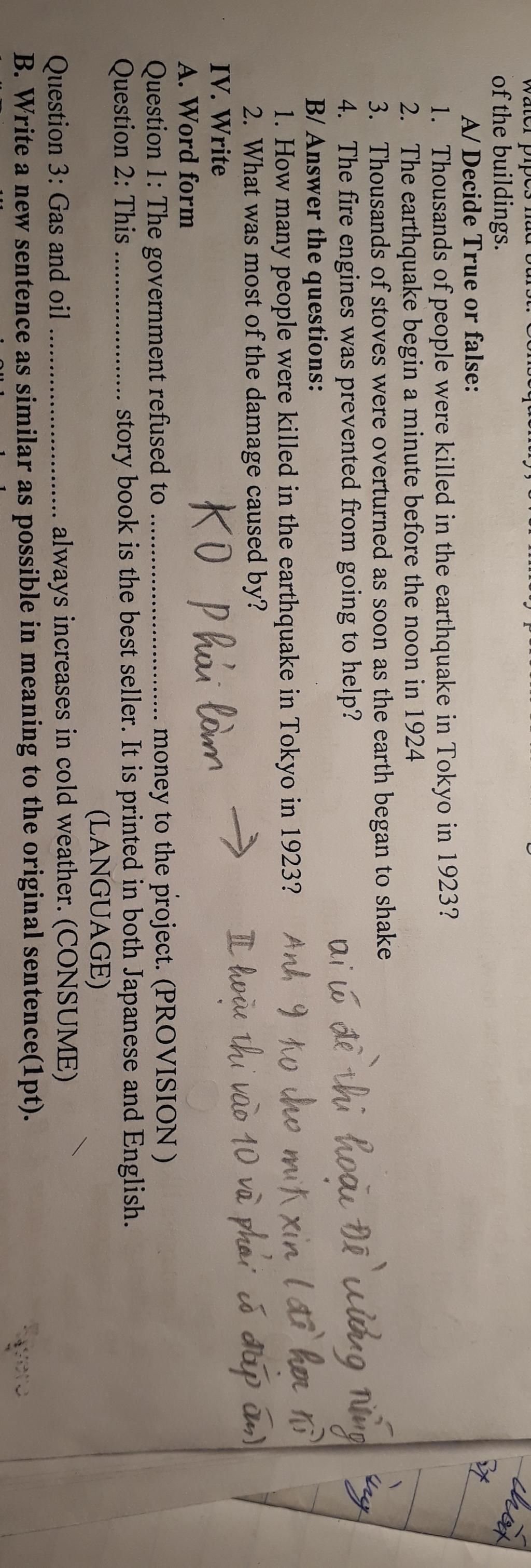 1. Thousands of people were killed in the earthquake in Tokyo in 1923?