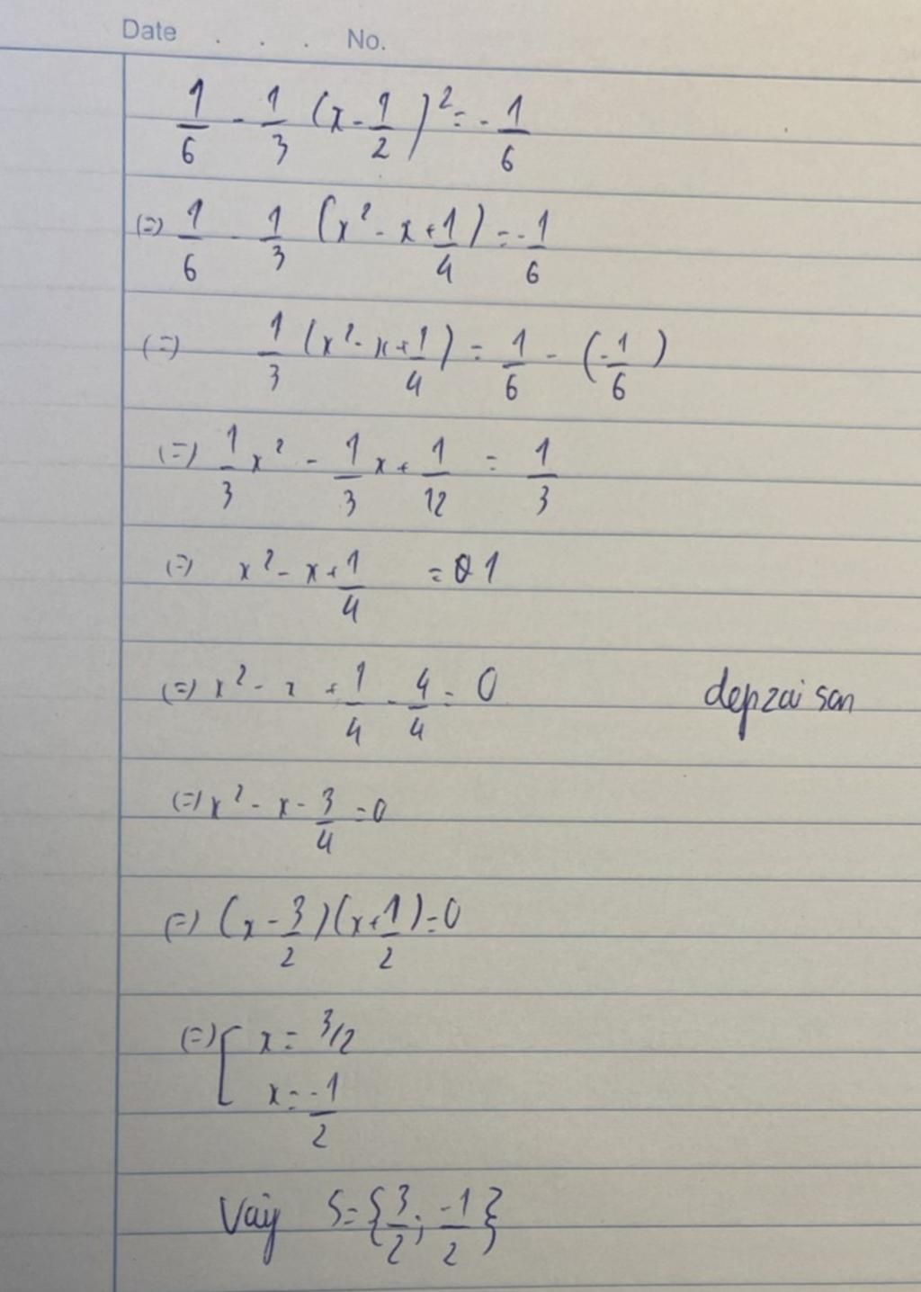 `1/6 - 1/3(x - 1/2)² = (-1)/6`