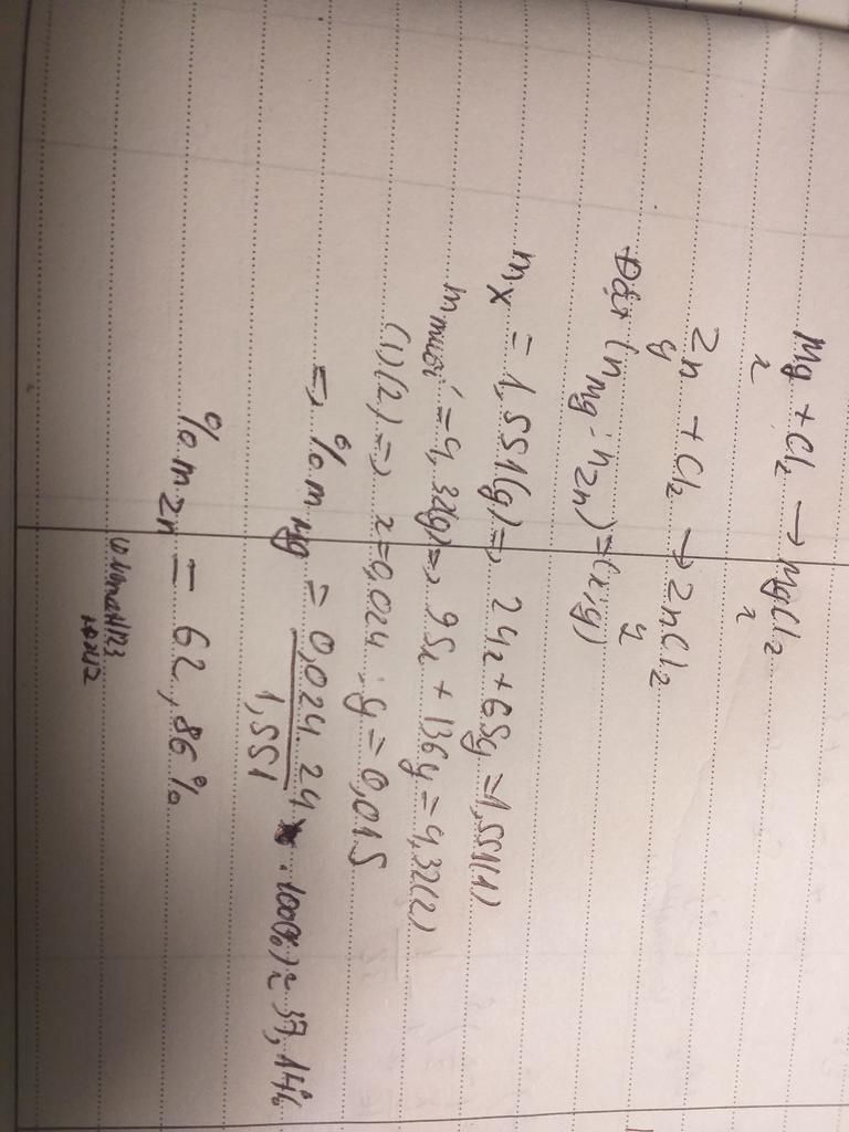 `PTHH:Mg+2HCl->MgCl_2+H_2`