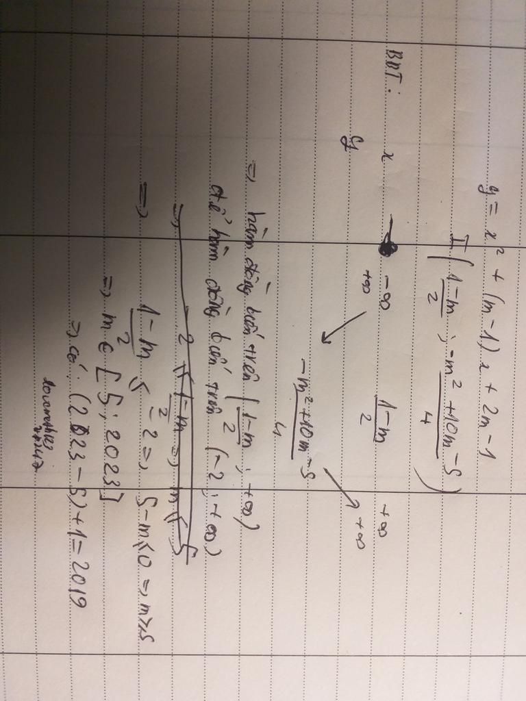 có bao nhiêu giá trị nguyên nhỏ hơn 2024 của tham số m để hàm số y=x^2+(m-1)x+2m-1 đồng biến trên khoảng( -2; dương vô cùng)