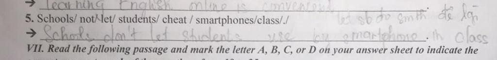 5. Schools/ not/let/ students/ cheat / smartphones/class/./
