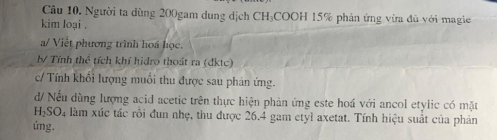 `a.PTHH:2CH_3COOH+Mg->(CH_3COO)_2Mg+H_2`