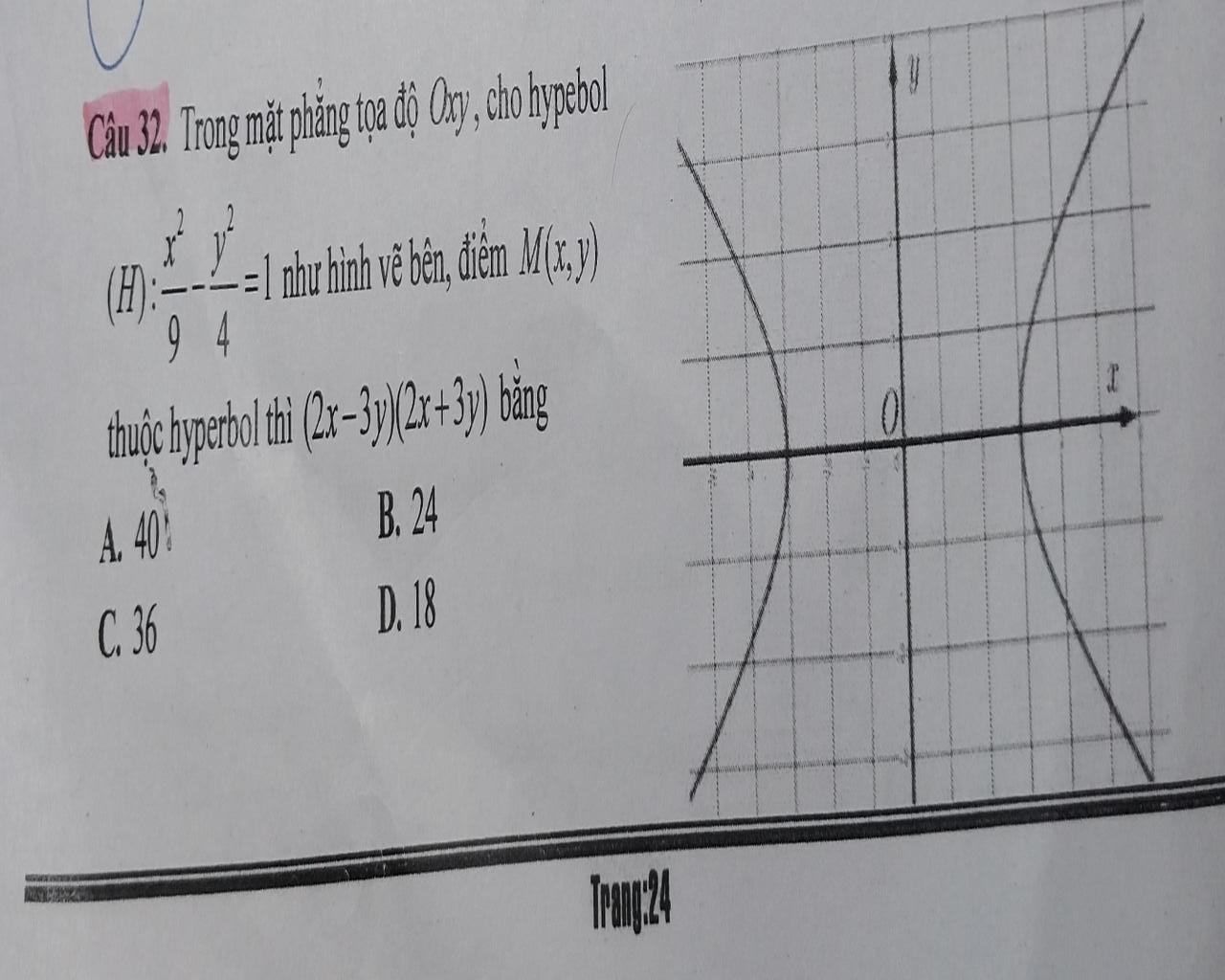 `<=>` `(2x)^2 - (3y)^2 = 36`