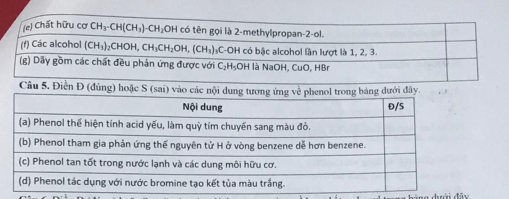 (f) Sai. Bậc alcohol lần lượt là $2, 1, 3$