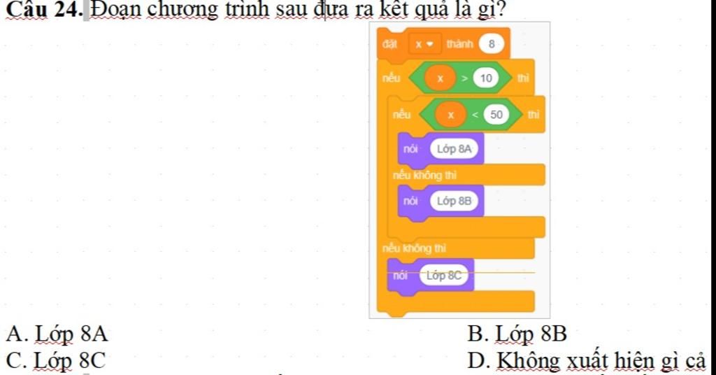 Câu 24. Đoạn chương trình sau đưa ra kết quả là gì?