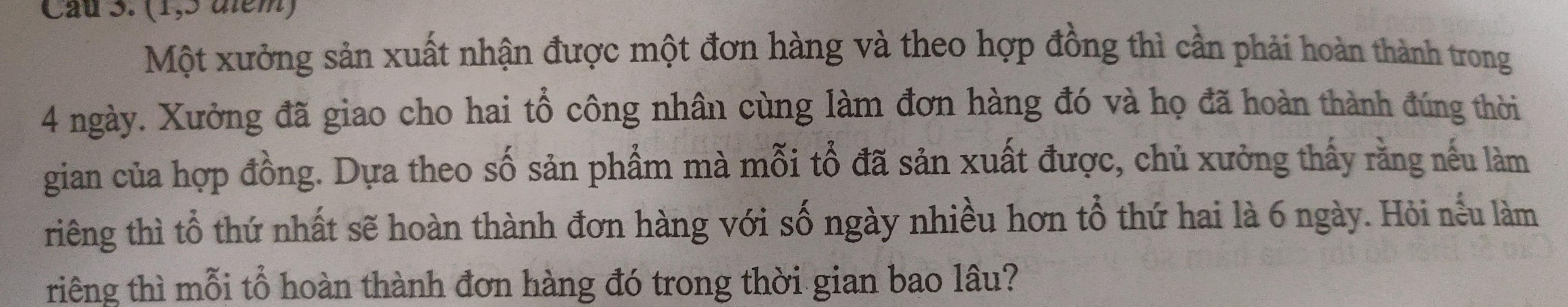 Vậy tổ một làm riêng thì hoàn thành đơn hàng trong 12 ngày