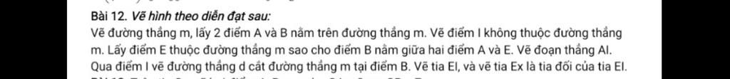 Vẽ đường thẳng m, lấy 2 điểm A và B nằm trên đường thẳng m. Vẽ điểm I không thuộc đường thẳng
