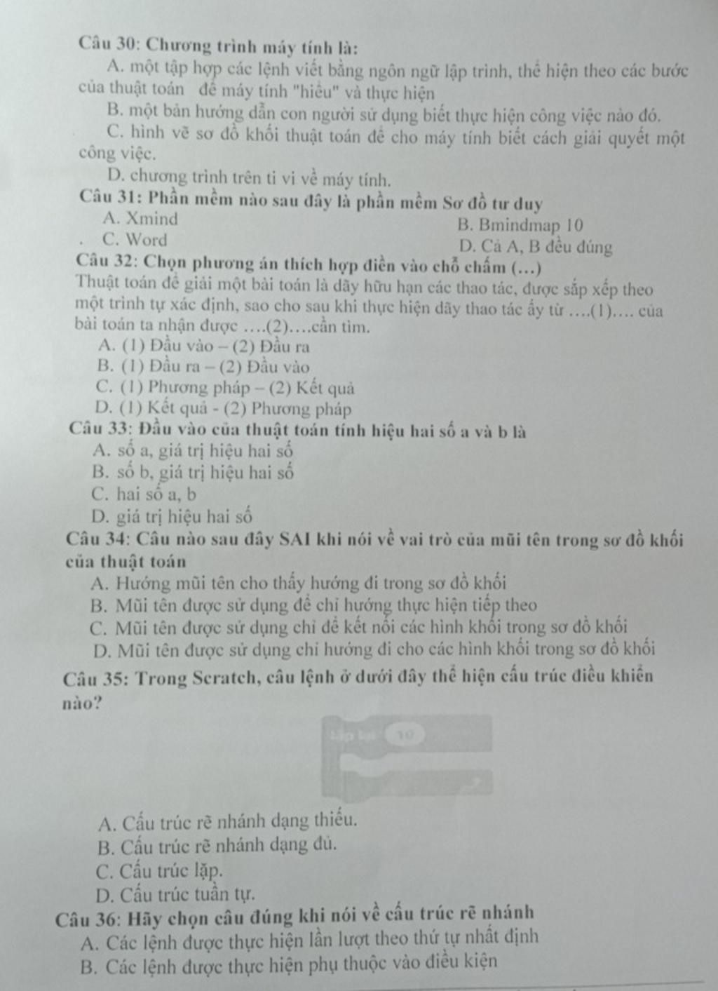 Câu 35: Trong Scratch, câu lệnh ở dưới đây thể hiện cấu trúc điều khiển nào?
