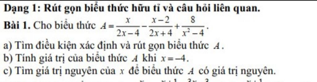 Dạng 1: Rút gọn biểu thức hữu tỉ và câu hỏi liên quan.