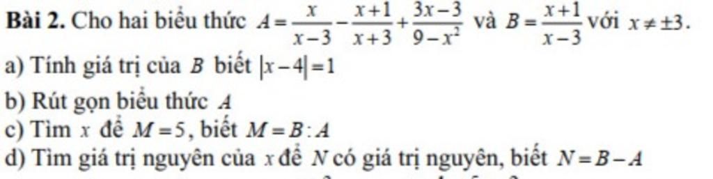 Bài 2. Cho hai biểu thức