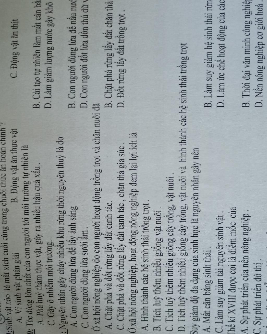 0: Tác động lớn nhất của con người tới môi trường tự nhiên là
