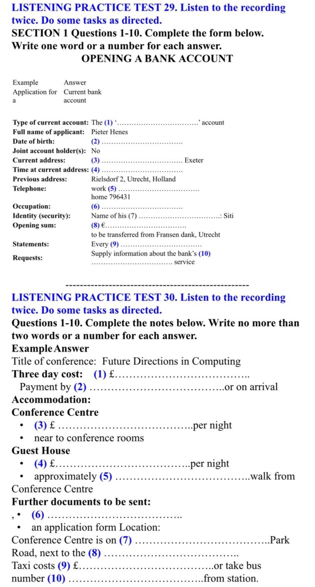 LISTENING PRACTICE TEST 29. Listen to the recording