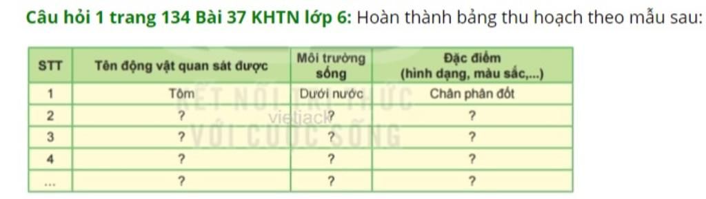 Câu hỏi 1 trang 134 Bài 37 KHTN lớp 6: Hoàn thành bảng thu hoạch theo mẫu sau: