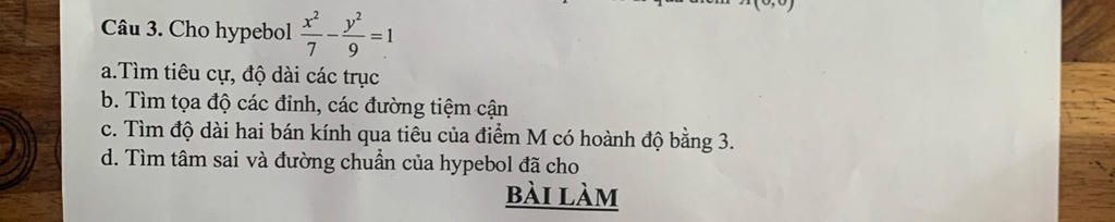 c. Tìm độ dài hai bán kính qua tiêu của điểm M có hoành độ bằng 3.