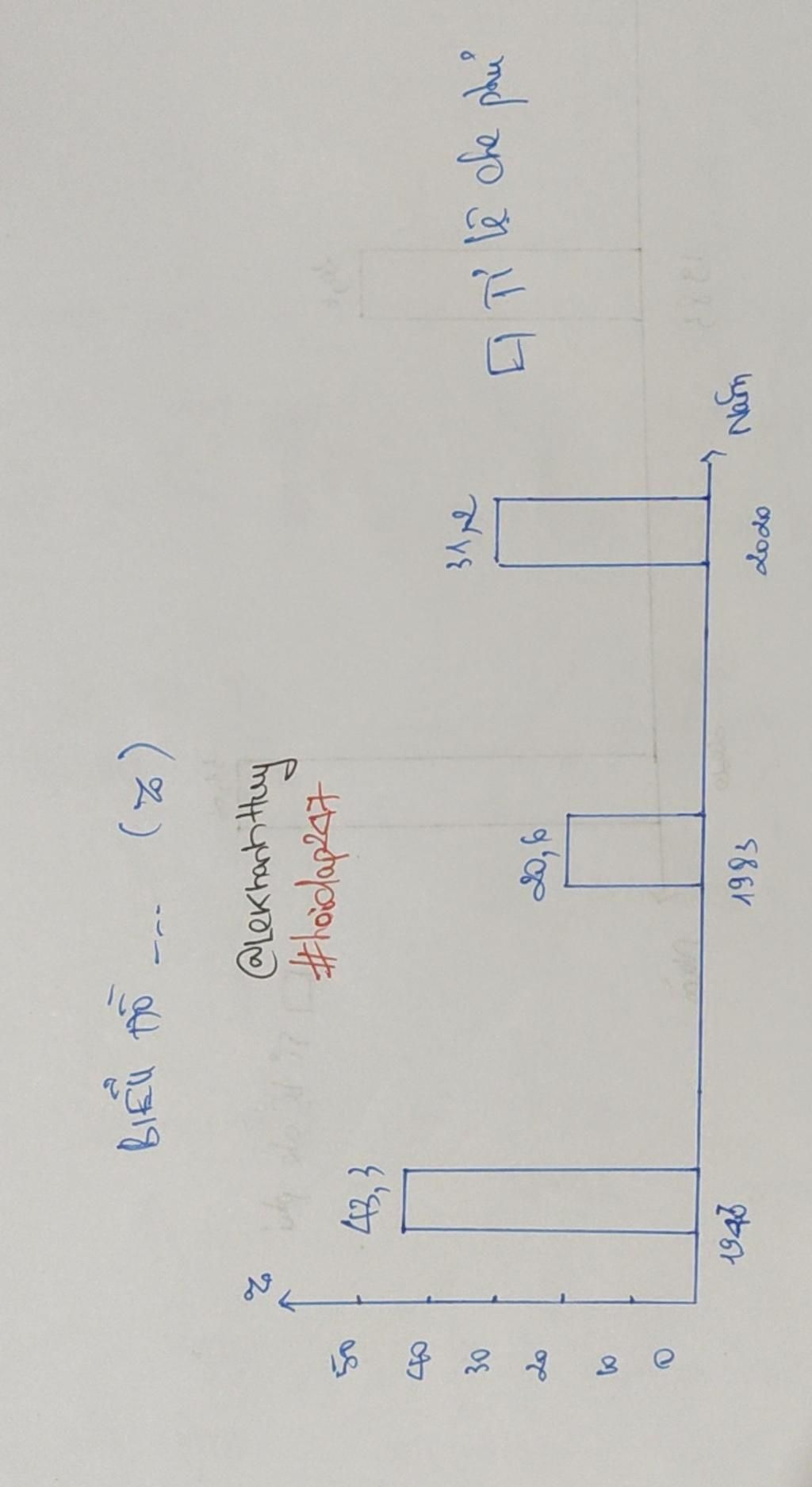 `-` Giai đoạn `1943-1983` diện tích rừng nước ta có xu hướng giảm từ `14,3%` `(` năm `1943` `)` xuống còn `6,8%` `(` năm `1983` `)` `->` giảm `7,5%`