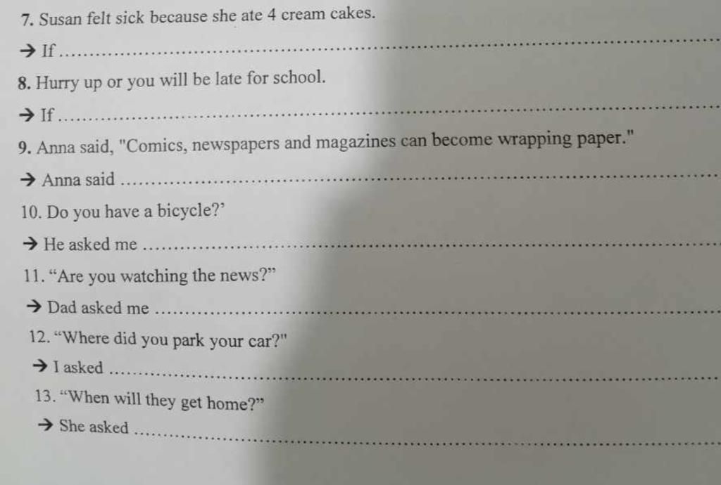 7. If Susan hadn't eaten 4 cream cakes, she wouldn't have felt sick.