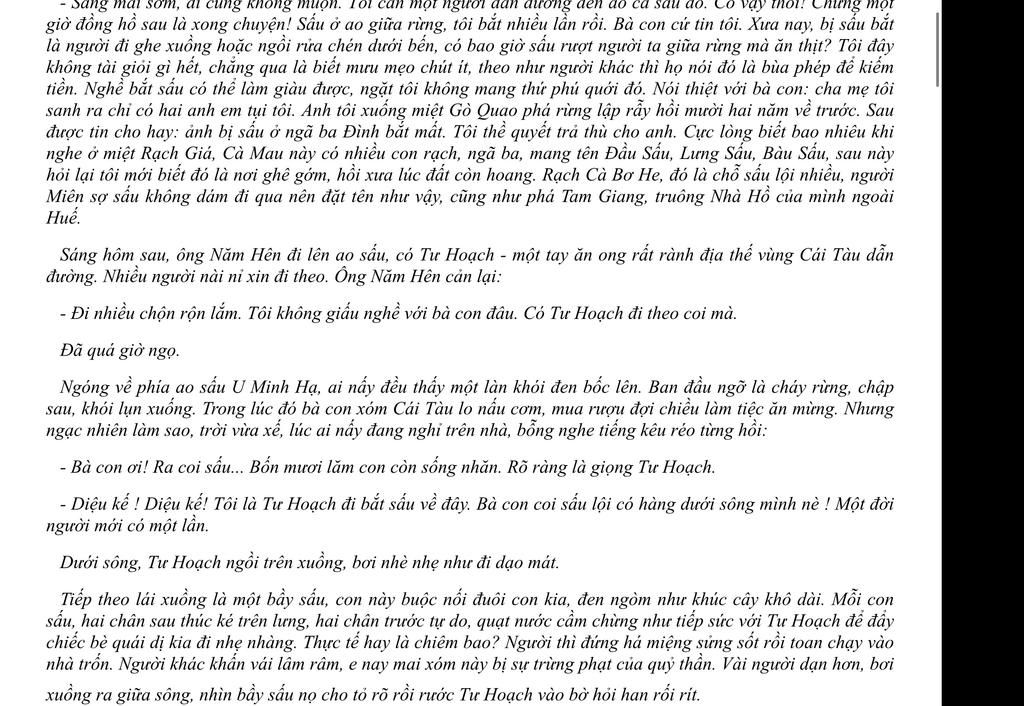 Câu 7. Qua văn bản trên, hãy nêu cảm nhận của anh/ chị về vùng đất và con người miền cực Nam Tổ quốc qua truyện ngắn “Bắt sấu rừng U Minh Hạ”.