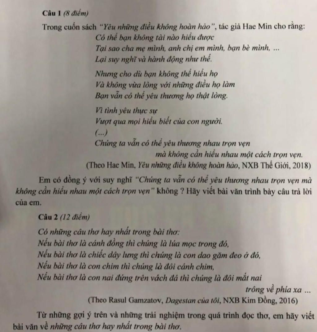 * Đoạn trích trên là một tác phẩm của tác giả Hae Min trong cuốn sách "Yêu những điều không hoàn hảo". Đoạn trích đã cho ta thấy mối quan hệ giũa yêu thương và hiểu nhau. Sẽ có hai luồng ý kiến về tính đúng sai của vấn đề này. Có người sẽ cho rằng yêu thương không nhất thiết phải hiểu nhau, những cung co người sẽ cho rằng muốn yêu thương được trọn vẹn thì bắt buocj phải hiểu nhau. Còn tôi, tôi cho rằng ngữu liệu mà tác giả đưa ra là đúng, sự hiểu nhau chỉ là phạm trù nhỏ của yêu thương chứ không phải tất cả