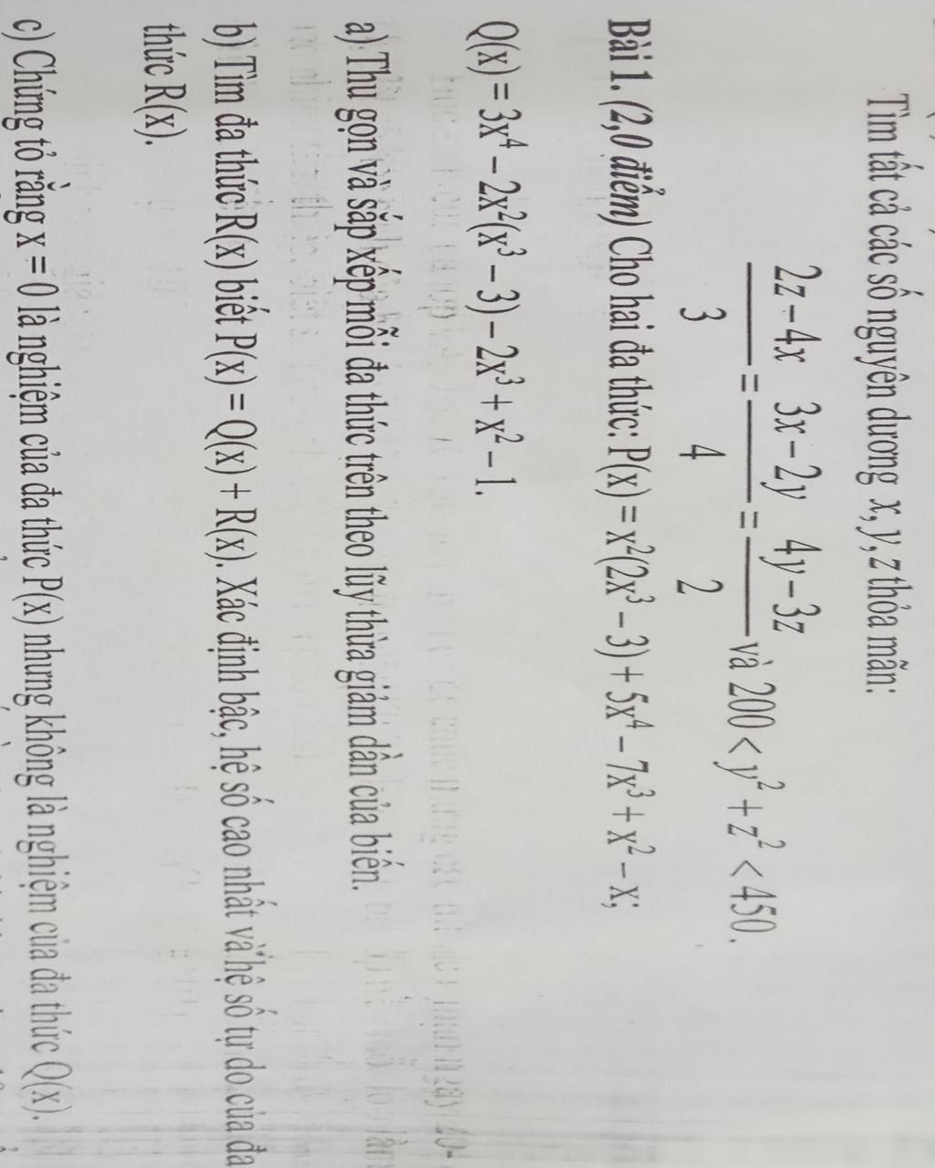 Bài 1. (2,0 điểm) Cho hai đa thức: P(x) = x^2x – 3) + 5x – 7x® + xả Xị