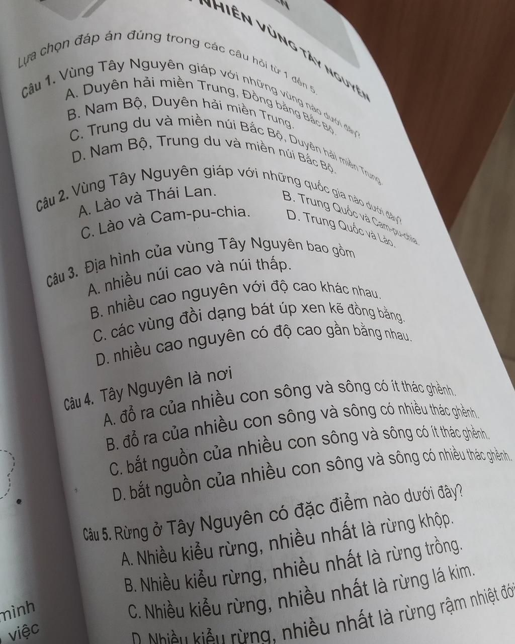 `5.`Tây Nguyên là vùng còn có nhiều rừng tự nhiên nhất nước ta. Ở đây có nhiều kiểu rừng, trong đó nhiều nhất là rừng rậm nhiệt đới