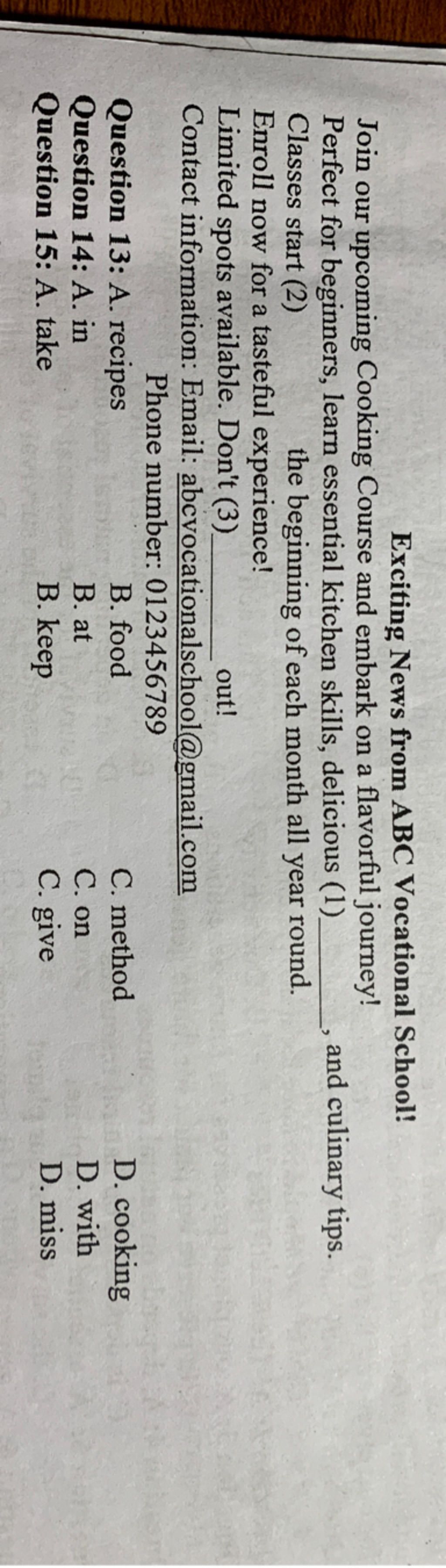 $13.$ $A.$ recipes