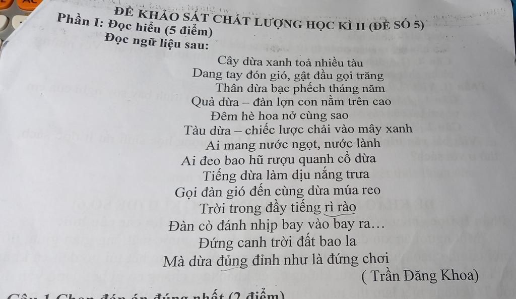 Câu 3 : Trong bài thơ trên, tác giả đã sử dụng thành công biện pháp tu từ nhân hóa