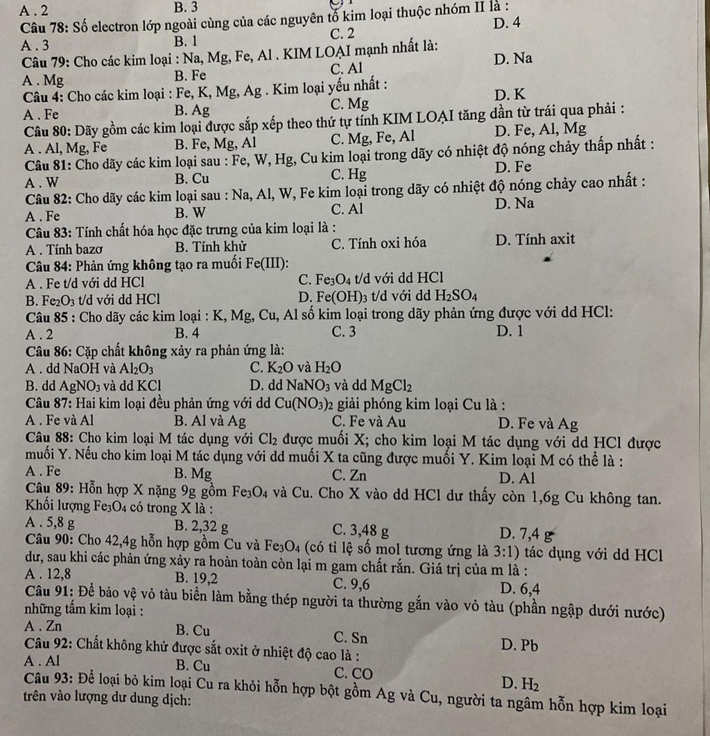 từ Na về trước là kim loại mạnh pư đc vs H2O ở đk thường